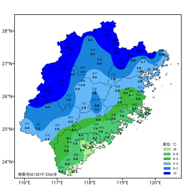 受強冷空氣影響,20日起全省氣溫將明顯下降,最低氣溫過程降溫幅度5~11℃,21日~24日夜晨氣溫低,最低氣溫出現(xiàn)在24日早晨;最低氣溫西部、北部部分城區(qū)達-4~2℃,有霜凍或結(jié)冰;中南部沿海縣市城區(qū)6~10℃;其余地區(qū)城區(qū)2~6℃,部分有霜或霜凍(圖1)。