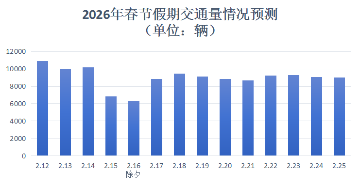 2026年“春節(jié)”放假時間為2026年2月15日至2月23日,共9天。根據(jù)全省現(xiàn)有交通量觀測站的往年數(shù)據(jù)預(yù)測,2026年“春節(jié)”假期全省普通國省干線日均交通量9320輛,較上年同期上升2.8%。
