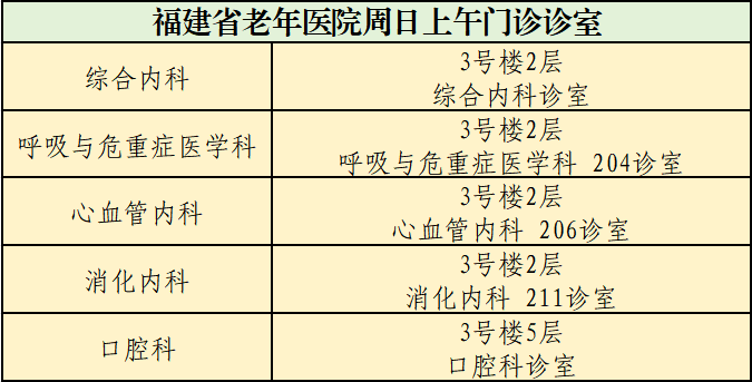 福建省老年醫(yī)院從12月7日起正式推出“周日診”服務(wù)——每周日上午將有綜合內(nèi)科、呼吸與危重癥醫(yī)學(xué)科、心血管內(nèi)科、消化內(nèi)科、口腔科等重點(diǎn)科室專家坐診。