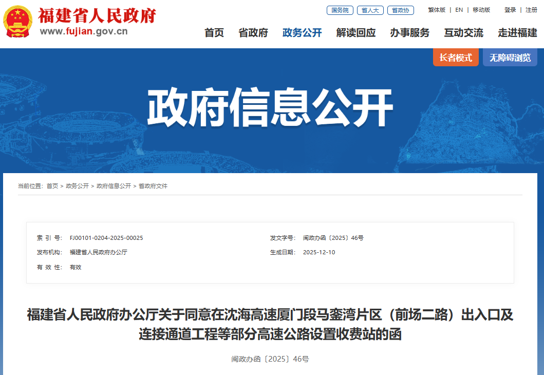 據(jù)悉,經(jīng)省人民政府研究,同意在沈海高速廈門段馬鑾灣片區(qū)(前場二路)出入口及連接通道工程設(shè)置“廈門馬鑾灣”收費站,在寧武高速鶴山服務(wù)區(qū)A區(qū)出入口工程設(shè)置“古田鶴山”收費站,在泉南高速西洋服務(wù)區(qū)B區(qū)出入口工程設(shè)置“永安葛福”收費站,在長深高速小橋服務(wù)區(qū)B區(qū)出入口工程設(shè)置“建甌甘源茶宿”收費站。收費站的建設(shè)必須符合國家、省關(guān)于公路收費站的相關(guān)要求,經(jīng)驗收合格后,方可投入使用。