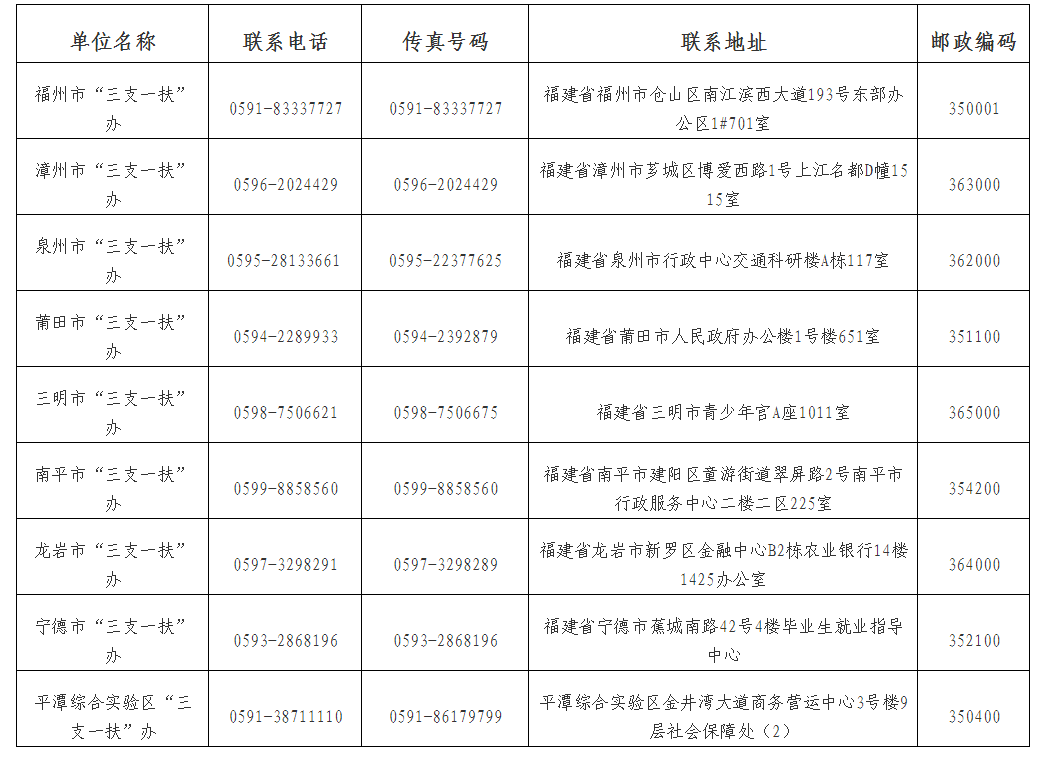 福建省各設(shè)區(qū)市“三支一扶”辦聯(lián)系表