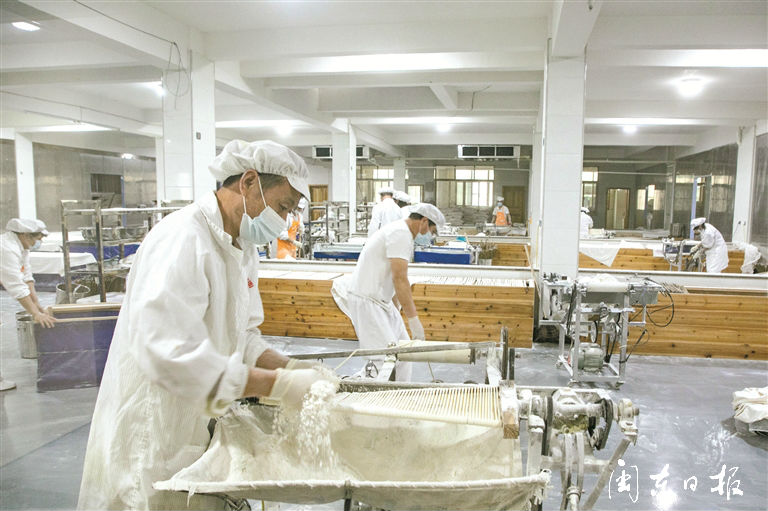 臺海網(wǎng)12月15日訊 據(jù)寧德網(wǎng)消息 12月9日,在福安市“好穆陽線面”觀光體驗(yàn)工場內(nèi),工人們正進(jìn)行線面生產(chǎn)、包裝。