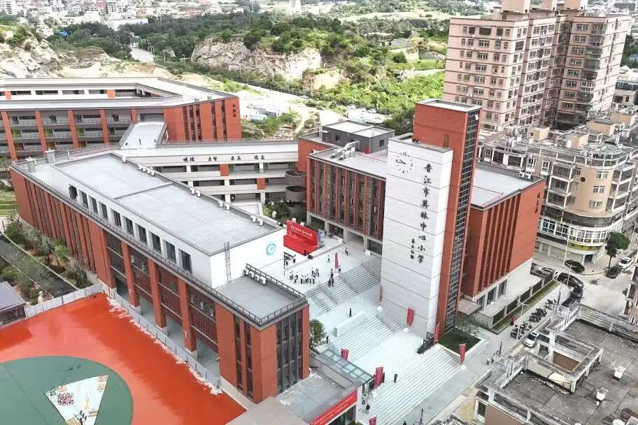 2022年春天,洪肇明、洪忠信為英林中心小學新校區(qū)鏟下奠基的第一抔土;今年秋天,勁霸集團第三代掌門人洪锽淮捧著象征信任與責任的“鑰匙”,為校園的正式落成打開第一扇門——用了3年,這座占地面積約53.8畝、總建筑面積近4.5萬平方米的新校園拔地而起。