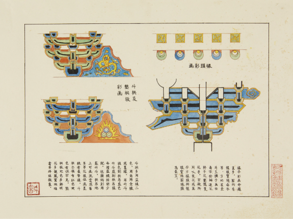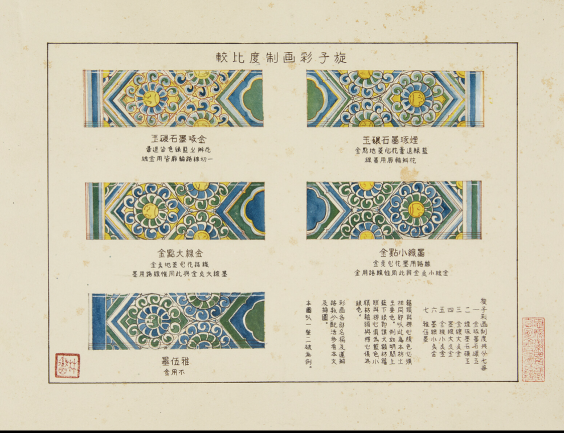 林徽因與梁思成收藏的旋子彩畫制度、椽子彩畫圖