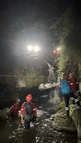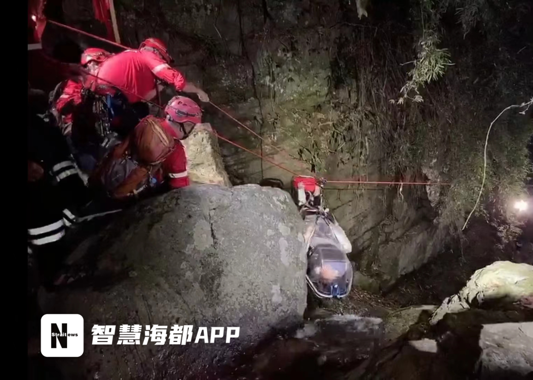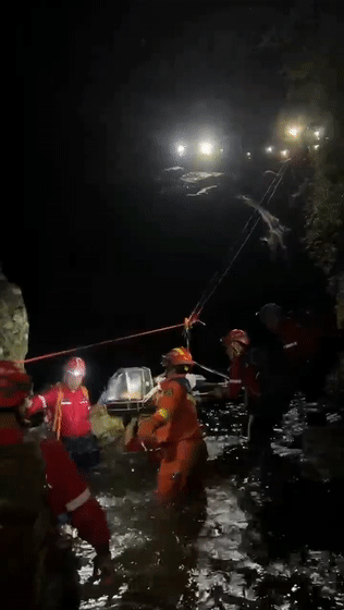 當時已是深夜11時,救援人員滿頭大汗全身濕透,山里的溪水冰冷湍急,隊員們下入齊腰深的水中搭起“人橋”,肩扛手托,將載有傷者的擔架接力轉運到對岸。