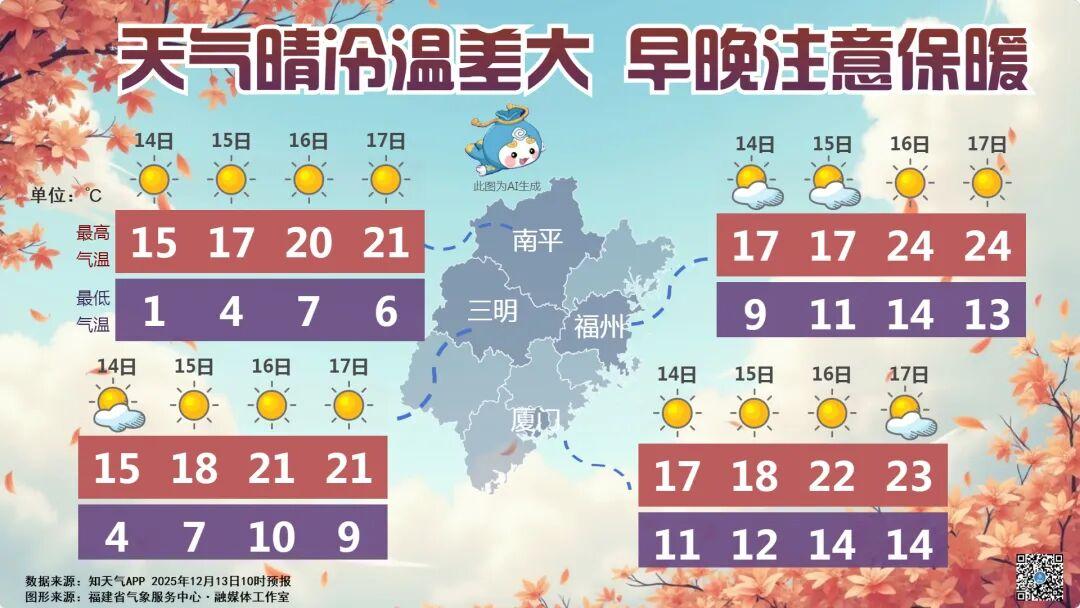 13日夜里我市氣溫明顯下降,過程降溫幅度達(dá)4℃~8℃,今天內(nèi)陸和沿海北部城區(qū)最低氣溫僅5℃左右,福州市區(qū)今明兩天最高氣溫降至17℃,最低氣溫低至8℃~10℃。