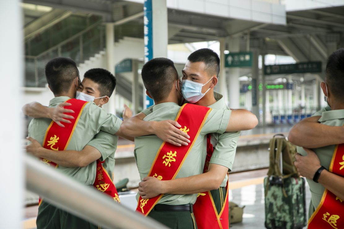 “敬禮!”送站現(xiàn)場(chǎng),該支隊(duì)領(lǐng)導(dǎo)與退役老兵互敬軍禮、互相問候、互道珍重。車站內(nèi)期望之聲、關(guān)懷之聲、祝福之聲不絕于耳,經(jīng)久不息。“帶上軍銜,那種榮耀與榮光伴隨了我整個(gè)軍旅生涯。只要國(guó)家有需要我們的時(shí)候,我們義不容辭。若有戰(zhàn),召必回……”退役老兵李清臨行前的一番感言,迎來戰(zhàn)友陣陣掌聲。