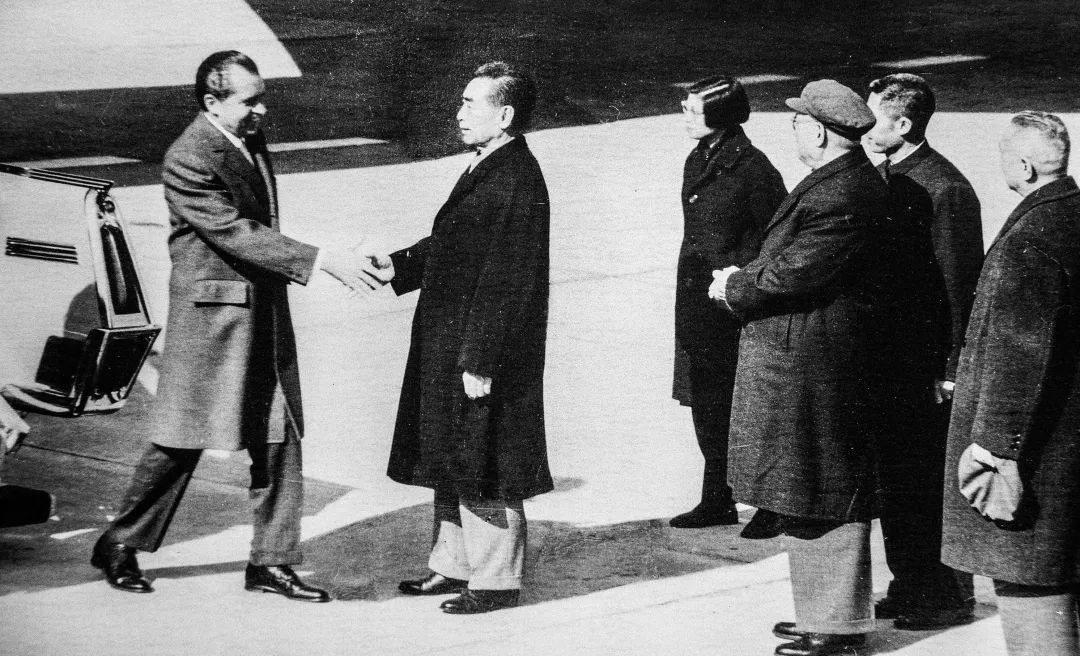 1972年2月,周恩來在機場迎接美國總統(tǒng)尼克松,7年后,中美正式建交(圖源:IC photo)