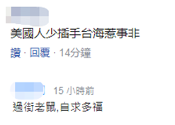 對(duì)于美國(guó)軍機(jī)接二連三被曝出現(xiàn)在臺(tái)灣附近空域,有島內(nèi)網(wǎng)民曾怒稱,美國(guó)人少插手臺(tái)海惹是生非,還有網(wǎng)民喊話稱,過(guò)街老鼠,自求多福。↓