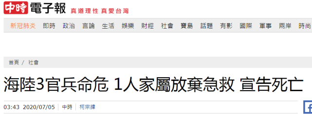 據(jù)臺媒報道,臺軍“漢光演習”將于本月13日登場,沒想到,3日上午,臺海軍陸戰(zhàn)隊在預(yù)演時,發(fā)生快艇翻覆意外,導(dǎo)致三人命危送醫(yī)搶救。5日凌晨1時19分,臺軍高雄總醫(yī)院左營分院發(fā)出消息表示,“本院收治陸戰(zhàn)隊蔡博宇上兵(即上等兵,臺軍的軍銜)于7月5日0點36分,家屬同意放棄急救,宣告死亡。”目前另兩名士官還在醫(yī)院加護病房,靠ECMO維持生命,醫(yī)院表示會繼續(xù)全力搶救。