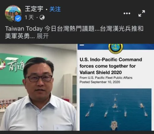 臺(tái)立法機(jī)構(gòu)民進(jìn)黨團(tuán)干事長(zhǎng)鄭運(yùn)鵬聲稱,雖然是電腦演習(xí),但“美國(guó)在臺(tái)協(xié)會(huì)”對(duì)“與臺(tái)灣協(xié)同作戰(zhàn)”上互相有更深的了解;民進(jìn)黨籍民代王定宇則“解讀”稱,美軍于14日至25日在西太平洋舉行“2020勇敢之盾”軍事演習(xí),與“漢光兵推”或有“因果、協(xié)同的關(guān)系”,是“默契上的行為”。