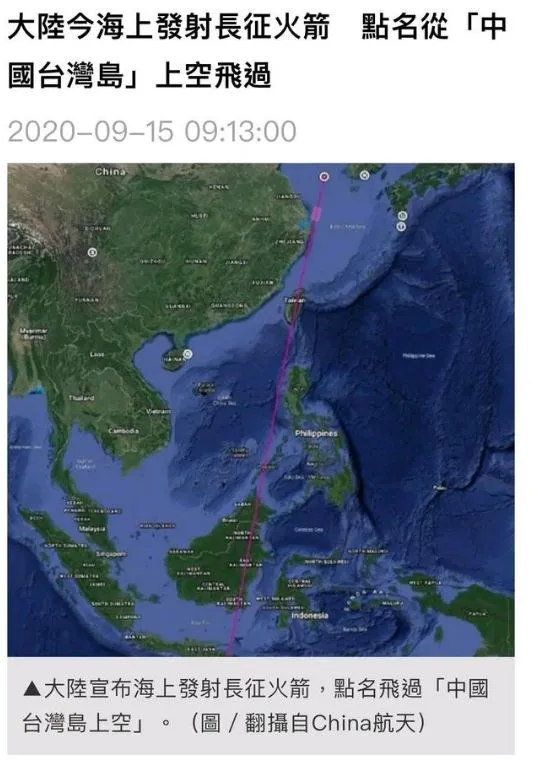 值得注意的是,這場(chǎng)兵推進(jìn)行時(shí),島內(nèi)還有不少人把眼光落在長(zhǎng)征十一號(hào)海射運(yùn)載火箭15日的成功發(fā)射上。微博賬號(hào)“CHINA航天”9月14日預(yù)告長(zhǎng)征十一號(hào)海射運(yùn)載火箭將以“一箭九星”方式將“吉林一號(hào)”高分03-1組衛(wèi)星送入預(yù)定軌道,并點(diǎn)名“火箭將從中國(guó)臺(tái)灣島上空飛過(guò)呀”。對(duì)此,臺(tái)媒紛紛展開解讀。