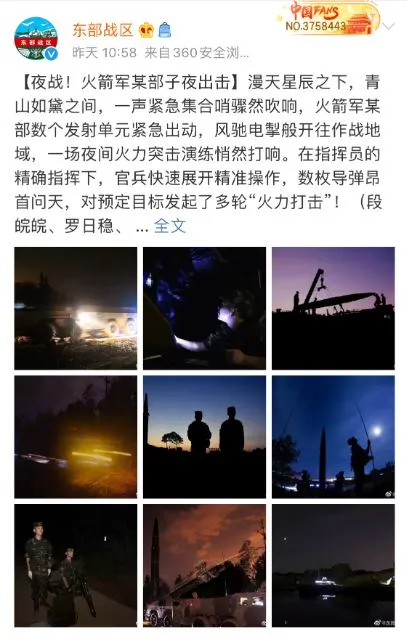 臺(tái)灣“中廣新聞網(wǎng)”則指出,根據(jù)解放軍東部戰(zhàn)區(qū)的官方微博發(fā)出的“夜戰(zhàn)!火箭軍某部子夜出擊”消息顯示,解放軍在9月14日夜間子夜,火箭軍某部隊(duì)數(shù)個(gè)發(fā)射單元出動(dòng),數(shù)枚導(dǎo)彈對(duì)預(yù)定目標(biāo)發(fā)起多輪火力打擊,而發(fā)射的導(dǎo)彈種類,從東部戰(zhàn)區(qū)微博公布的照片來(lái)看,“可能就是東風(fēng)-11導(dǎo)彈”。
