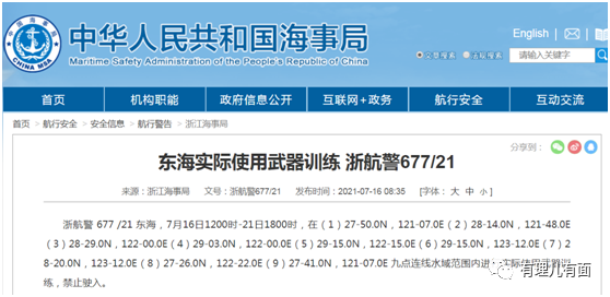 從國家海事局發(fā)布的信息來看,此次軍事演習(xí)的位置位于浙江省海域,地處臺(tái)灣海峽北部入口處。