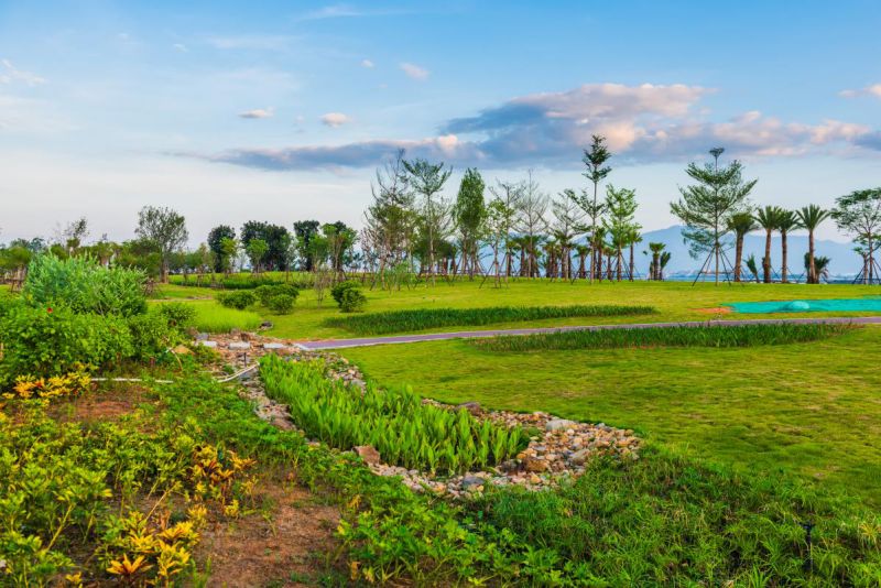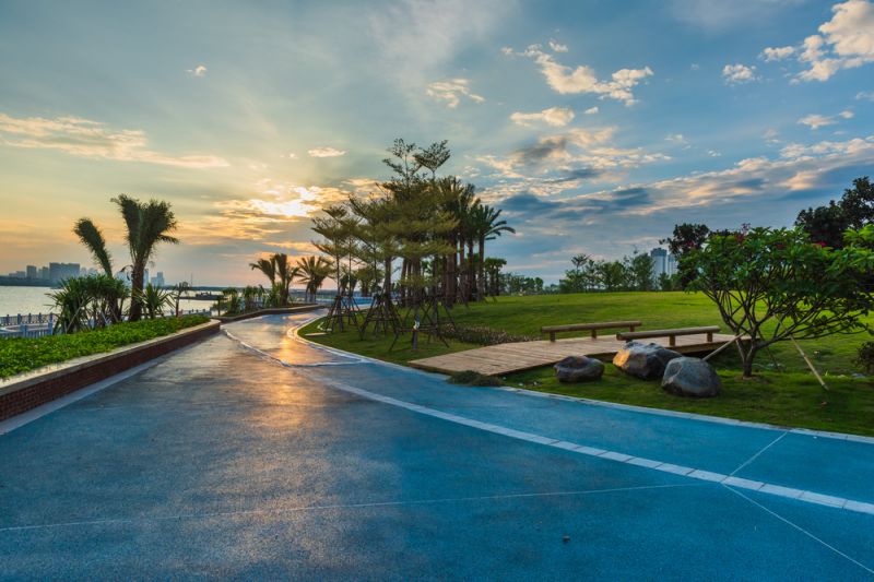 馬鑾灣帶狀公園位于新陽大道北側(cè),總面積約20萬平方米,長度約2公里,為片區(qū)內(nèi)首個帶狀公園。