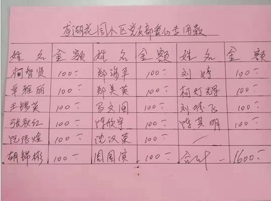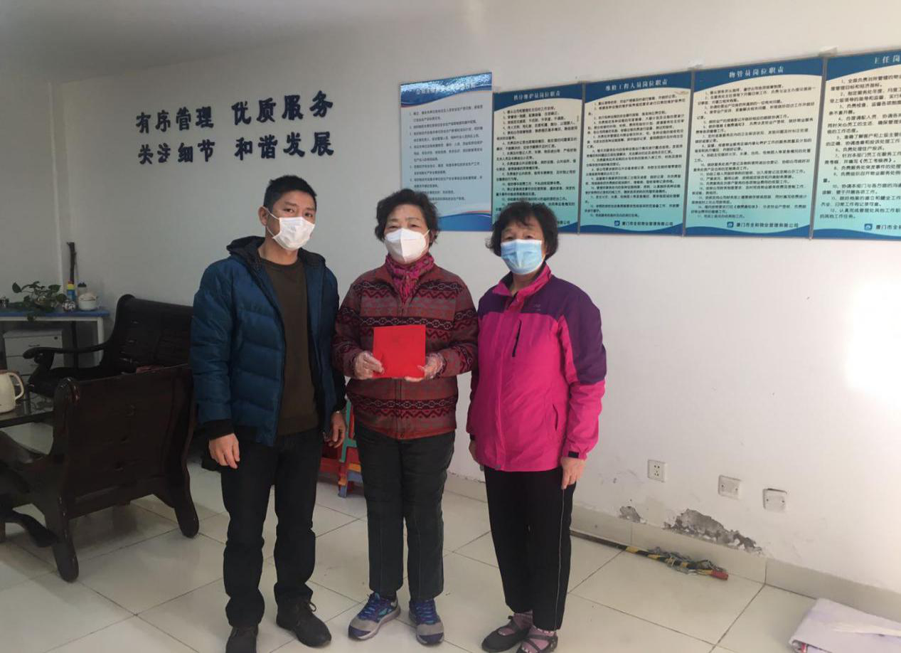 疫情爆發(fā)以來,禾山社區(qū)龍湖花園小區(qū)黨支部組織了6次黨員志愿服務,開展了2輪自愿捐款。第1輪由小區(qū)在冊黨員和在職黨員自發(fā)組織,籌集了4000元用于小區(qū)物業(yè)開展一線防疫工作。在上級黨組織的號召下,小區(qū)黨員又發(fā)起了第2輪自愿捐款,共計1500元用于支持防疫工作。