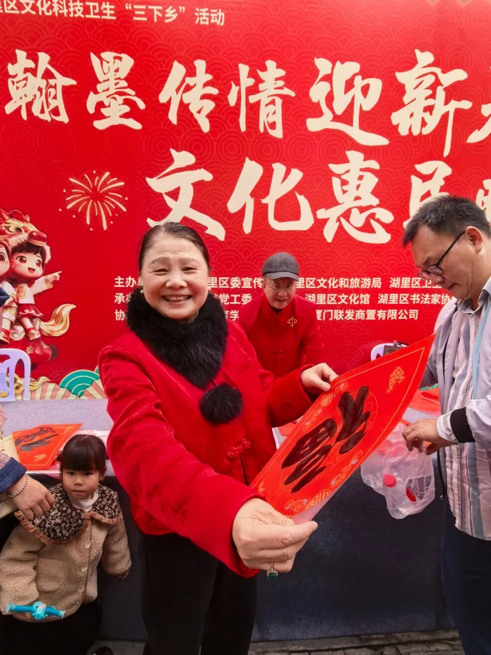 連續(xù)四年,湖里區(qū)書法家協(xié)會會長莊德義帶領(lǐng)近200名會員參與湖里區(qū)義務書寫春聯(lián)活動,他坦言:“每一年都能感受到社區(qū)居民對寫春聯(lián)活動的期待與喜愛,我們也希望能把最美好的祝愿送到社區(qū)、送到百姓家中,也送到大家心里。”