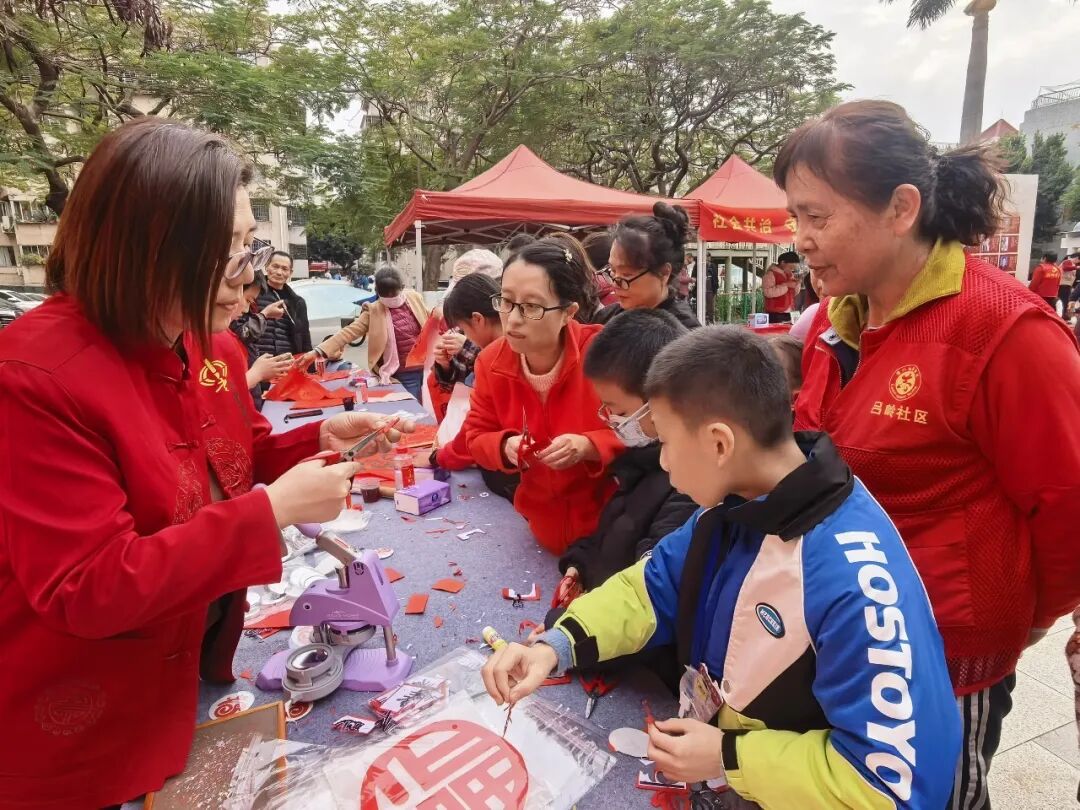 如果說春聯(lián)是春節(jié)的“文化名片”,剪紙則是湖里區(qū)為傳統(tǒng)技藝注入的“創(chuàng)新基因”。在剪紙?bào)w驗(yàn)區(qū),湖里區(qū)非遺剪紙代表性傳承人湯美霞手持剪刀,一張張紅紙瞬間化作靈動(dòng)的生肖圖案。市民們爭相體驗(yàn),將剪紙作品帶回家。