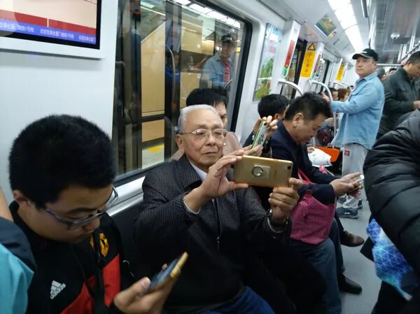 一位老人欣喜若狂地拿出手機(jī),定格這一瞬間,他說:“能在有生之年看到廈門地鐵的開通,很開心!”
