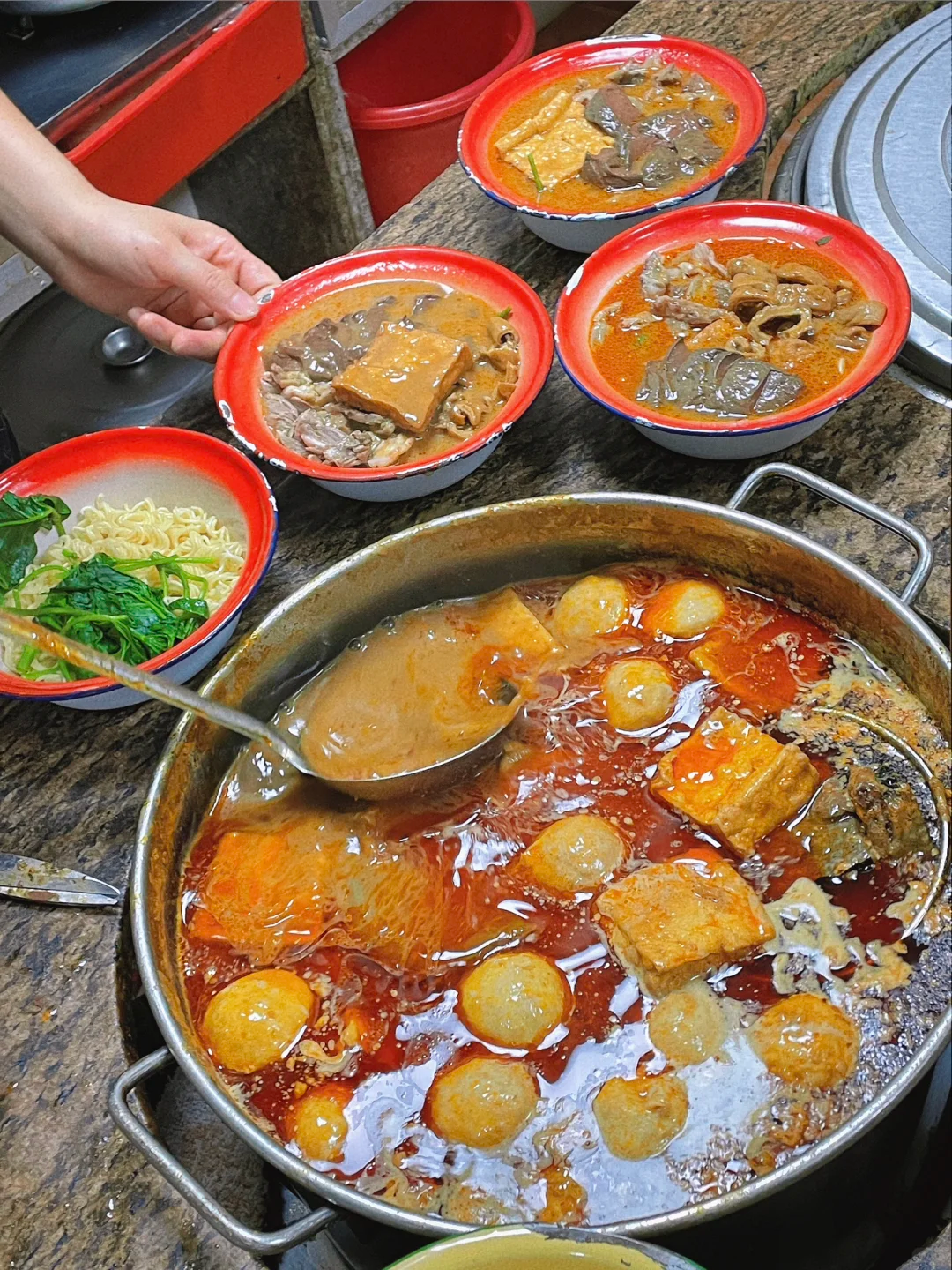 湯頭正,沙茶才對(duì)味。一勺蒜泥入碗,再澆入一大勺沙茶湯頭,鮮甜的底味蘊(yùn)于其中,咸鮮香辣的回味慢慢上涌,猛喝一口湯底,渾身便舒暢許多。