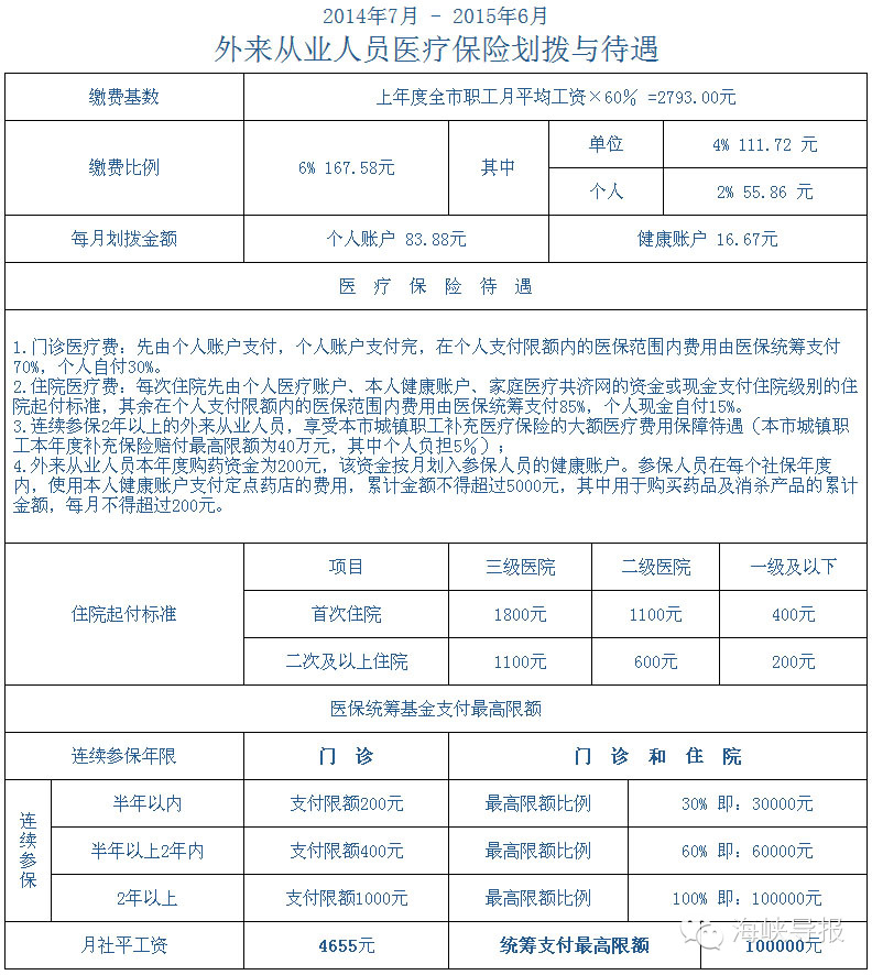 2014年度外來從業(yè)人員醫(yī)療保險劃撥與待遇;