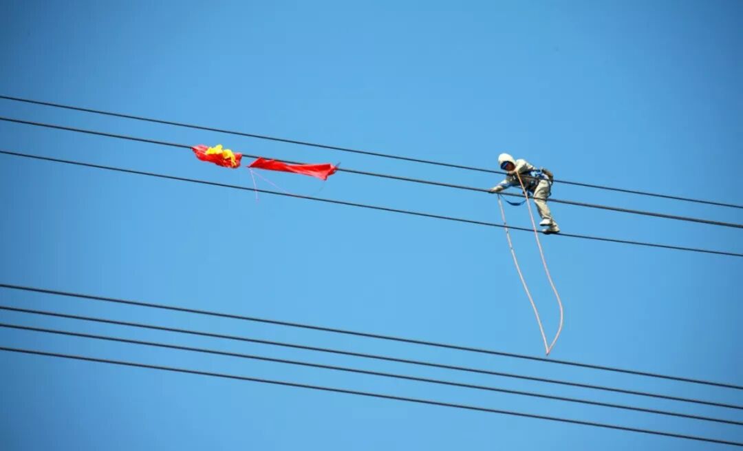 2016年8月份的一天,班組突然接到一個消缺通知:有個氣球彩帶飄到線路上去了,可能會造成短路,需要立即帶電處理。