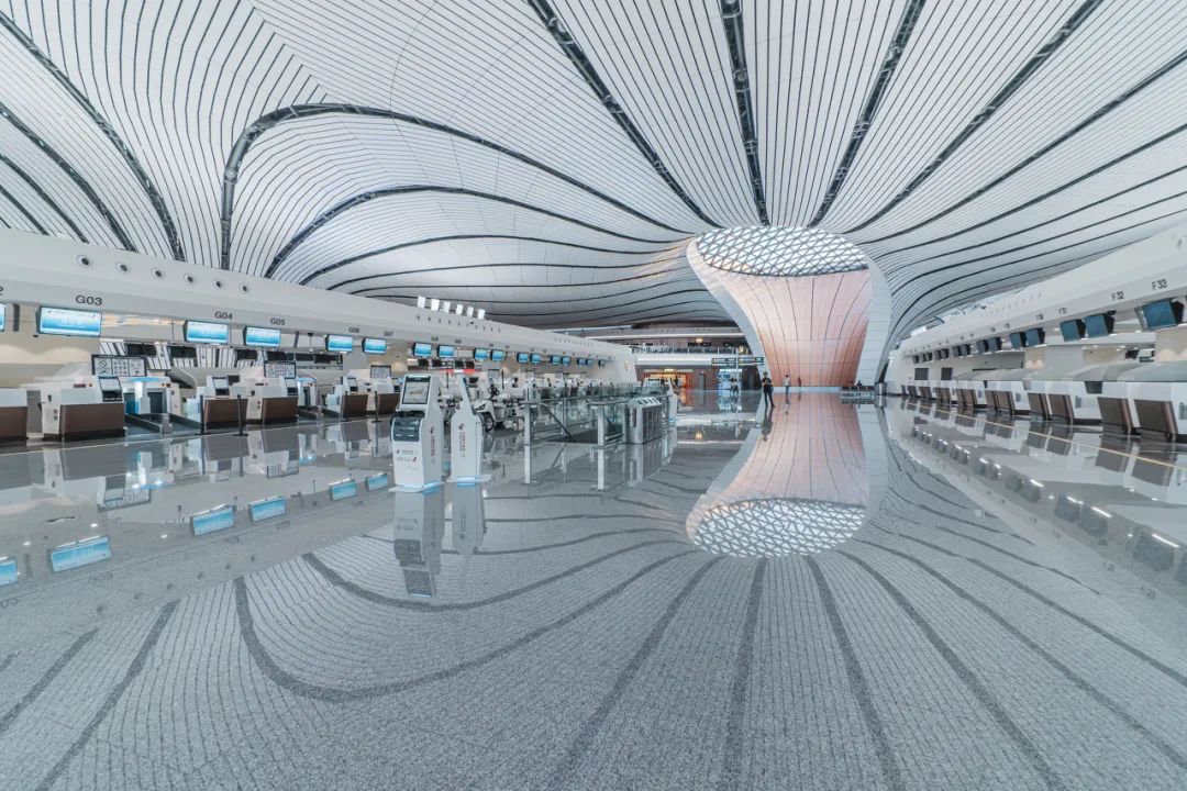 大興機(jī)場采用“多點(diǎn)值機(jī)”的設(shè)計(jì)理念,在航站樓四層、三層及地下一層均規(guī)劃數(shù)量眾多的值機(jī)柜臺。無論乘坐哪種交通工具到達(dá)機(jī)場的旅客,都可以就近辦理值機(jī),特別是疫情期間可減少樓內(nèi)換層,節(jié)省不必要的奔波。