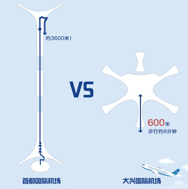 大興機(jī)場從航站樓中心到最遠(yuǎn)端登機(jī)口步行距離不超過600米,安檢后從航站樓中心步行到達(dá)任何一個(gè)登機(jī)口,所需時(shí)間不超過8分鐘,留給大家更多時(shí)間逛大興機(jī)場。