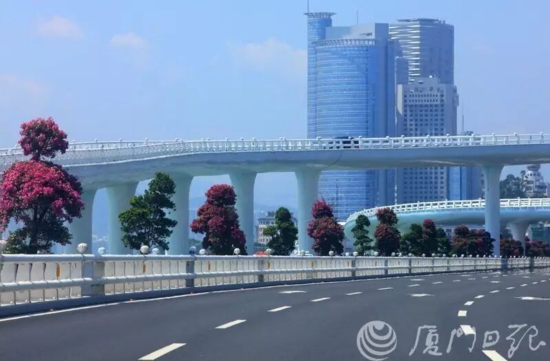 ▲演武大橋一帶,沿路布滿高度超過(guò)3.5米的紫花三角梅樁景。這些三角梅飽滿成熟,枝葉全覆蓋;造型優(yōu)美,冠幅飽滿。