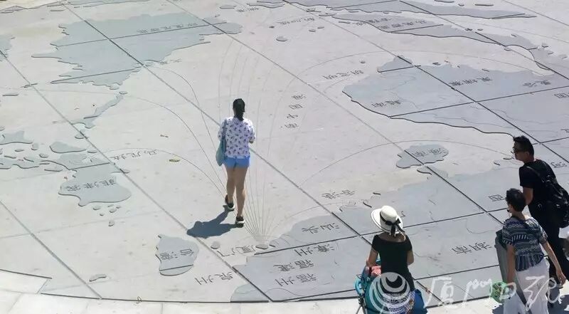 ▲中山路臨鷺江道處新設(shè)的小廣場(chǎng),市民游客從巨大的石雕地圖上走過(guò)。石雕講述廈門融入21世紀(jì)海上絲綢之路的地理區(qū)位、華僑華人、人文歷史等優(yōu)勢(shì)。量如江海、開(kāi)放包容的廈門歡迎八方賓客到來(lái)。