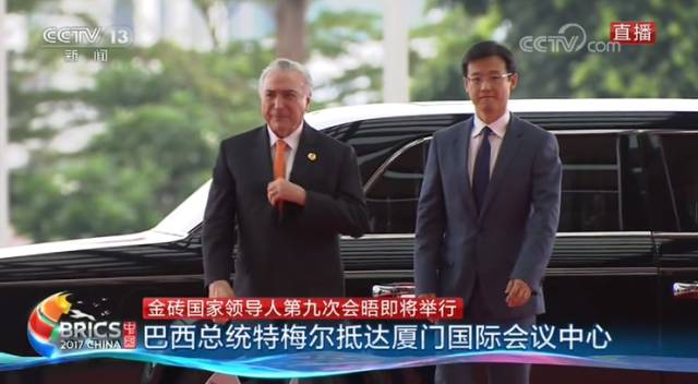 巴西總統(tǒng)特梅爾乘車抵達會場。